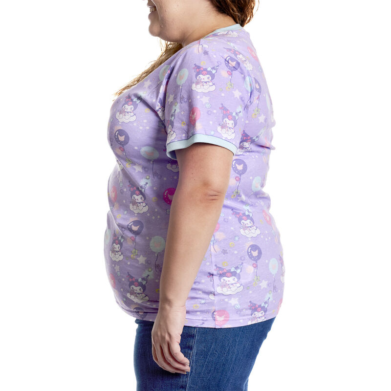 Set your sights on a dreamy spectacle of fun! The Loungefly Kuromi Carnival Unisex Tee shows your favorite friends as they soar through the sky. Covered in an all-over print, this tee shows Kuromi and Baku as they float on a cloud among the stars. Look closely and you’ll find Kuromi’s silhouette on balloons that drift nearby! This shirt makes an adorable addition to any outfit and will keep you looking cute as you frolic the day away.
