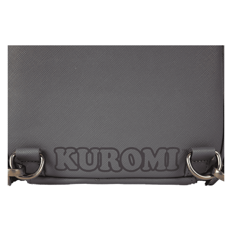 Feeling devilish, but in a browse-the-stationery-store kind of way? Take along this fierce but fun Kuromi convertible mini backpack. Dark textured faux leather makes this accessory an elegant stand-out. Appliques of her jester hat points stick up over the top in characteristic style, and her skull logo is embroidered in black. Baku also tags along as a faux leather charm. Pack just what you need for a day with friends, sharing smiles wherever you go.